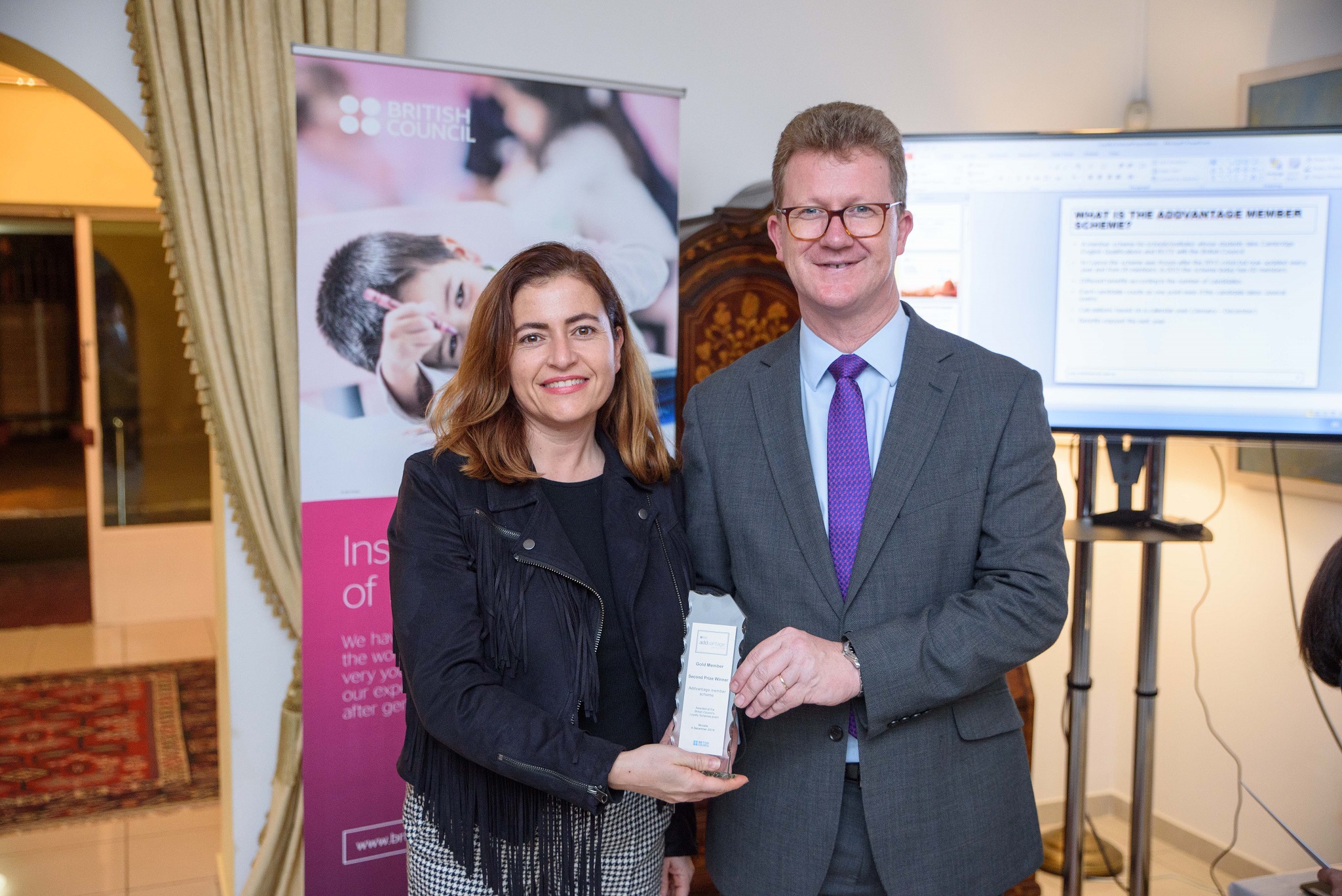 According to the press release issued by the Directorate of Press and Public Relations Office of Near East University, the ceremony was attended by Stephen Lillie, British High Commissioner and James Martin, Director Cyprus British Council and teachers from winner schools and institutions. It was stated that Stephen Lillie, the British High Commissioner, presented the 'Gold Member' award to Deniz Özkan, vice chair of English Language Department of Near East Primary School.