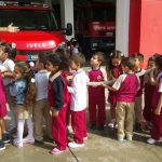 Near East Preschool Year 3, 4 and 5 students were given a practice of the emergency procedures to be used in case of fire when they were taken to a school trip to the Nicosia Industrial Area Fire Brigade.