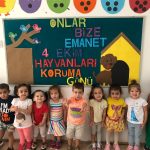Due to 4th October World Animal Day, various activities were held at the Near East Preschool. Such that, drama activities and games were organised to inform the children with the role of animals in the circle of life and the significance of protecting the animals was reinforced. Furthermore, the children were provided details on the rights of animals while supported with audio-visual materials. On the other hand, 2 year olds prepared an ‘Animal Protection Panel’ and gave out messages themed on protection and love for animals.
