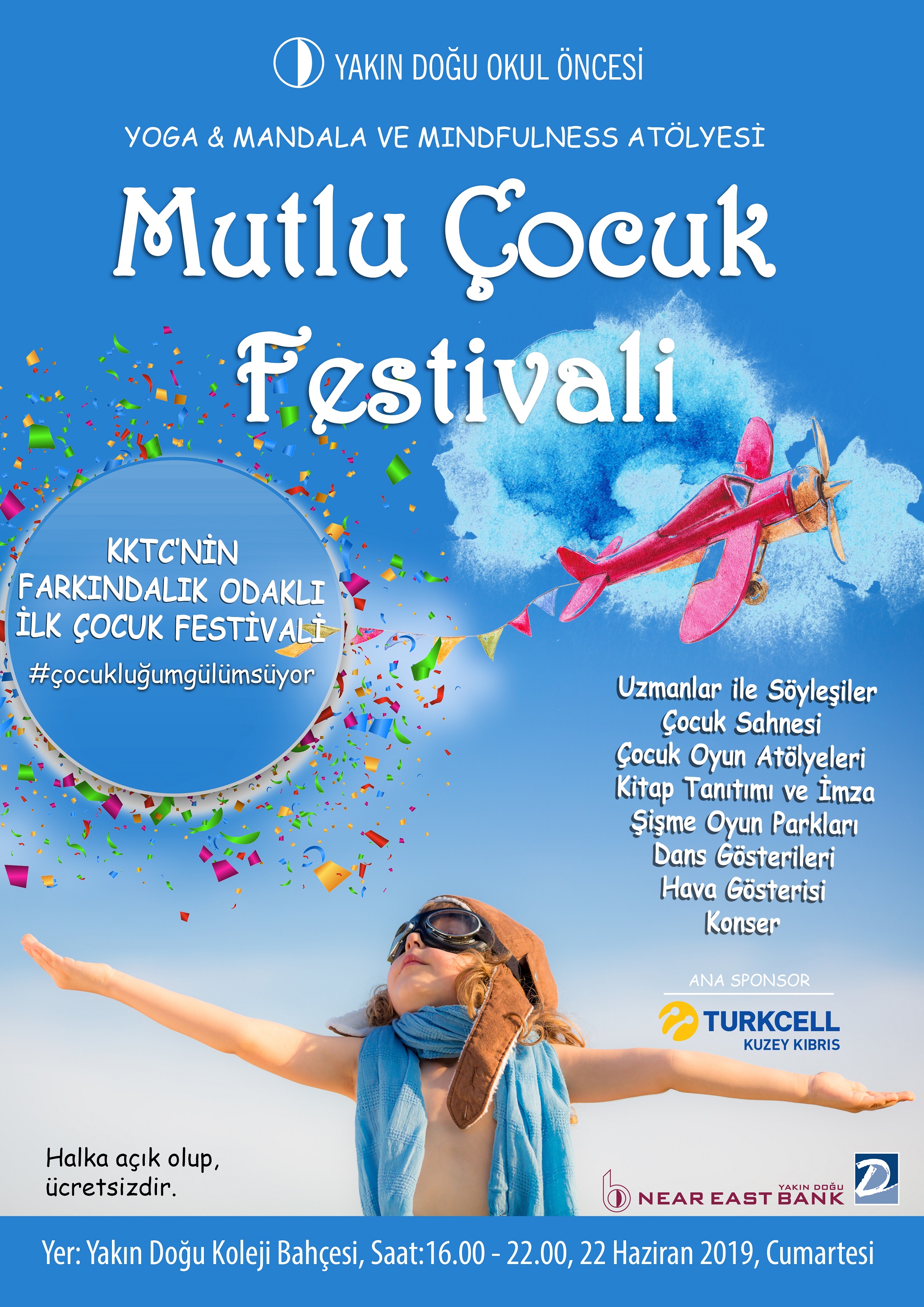 A festival full of fun and enthusiastic program with awareness workshops, playgrounds, painting workshops, interviews, dance performances, inflatable playgrounds, puppet show, drama, book presentation, air show, psycho show and closing concert was organized for children and parents. The festival is open to the public and will be free of charge.